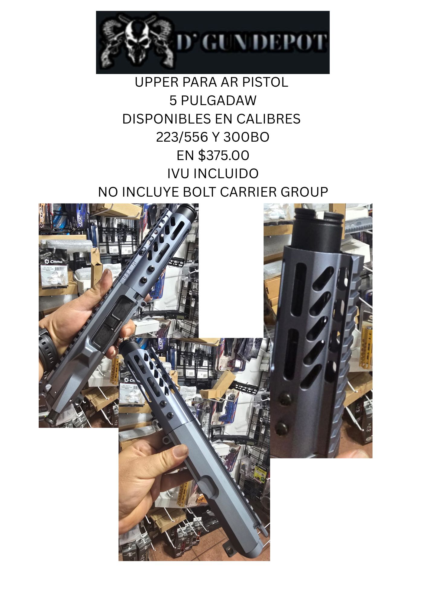 Inicio / AR-15 Pistol / UPPER / UPPER 5 PULGADAS PARA AR PISTOL CALIBRE 300BO COLOR GRIS UPPER 5 PULGADAS PARA AR PISTOL CALIBRE 300BO COLOR GRIS$37500 1 disponibles UPPER 5 PULGADAS PARA AR PISTOL CALIBRE 300BO COLOR GRIS cantidad Añadir al carrito Categorías: AR-15 Pistol, UPPER Product ID: 11694 Descripción Información adicional Descripción MIL SPEC CALIBRE 300BO NO BOLT CARRIER GROUP Información adicional Peso 4 lbs Dimensiones 14 × 3 × 3 in Productos relacionados Set de piezas AR15 rojo adonisado $13500 Fab coupler $2000 Sling para rifle verde $1000 Drum para AR15 y AR pistol 50 RD .223-556 $12500
